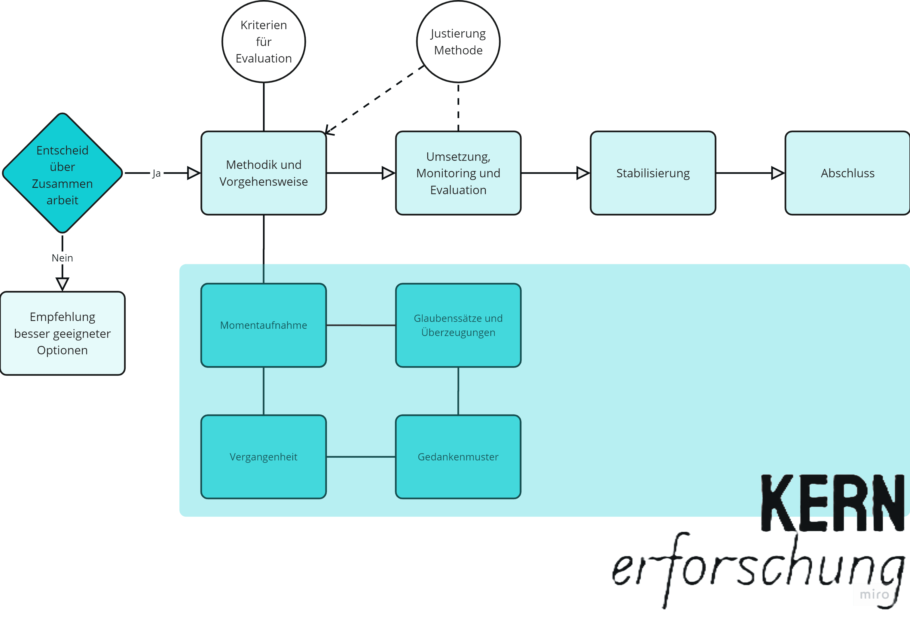 Grundanalyse: Erfassen deiner persönlichen Situation, Erwartungen und Ziele. Abgleich mit den Möglichkeiten der KERNerforschung und gemeinsamer Entscheid über den Beginn der Zusammenarbeit beziehungsweise Herausarbeiten besser geeigneter Optionen für deine Bedürfnisse. Dies findet im Rahmen des ersten Treffens statt.